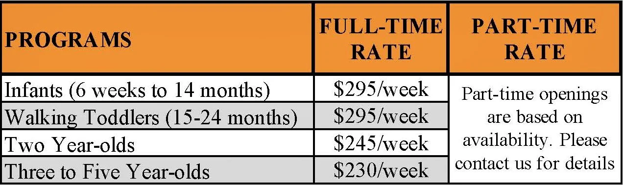Preschool tuition is paid in advance on a weekly basis, and is due on the Friday before the week begins or the last scheduled day of attendance for the week.